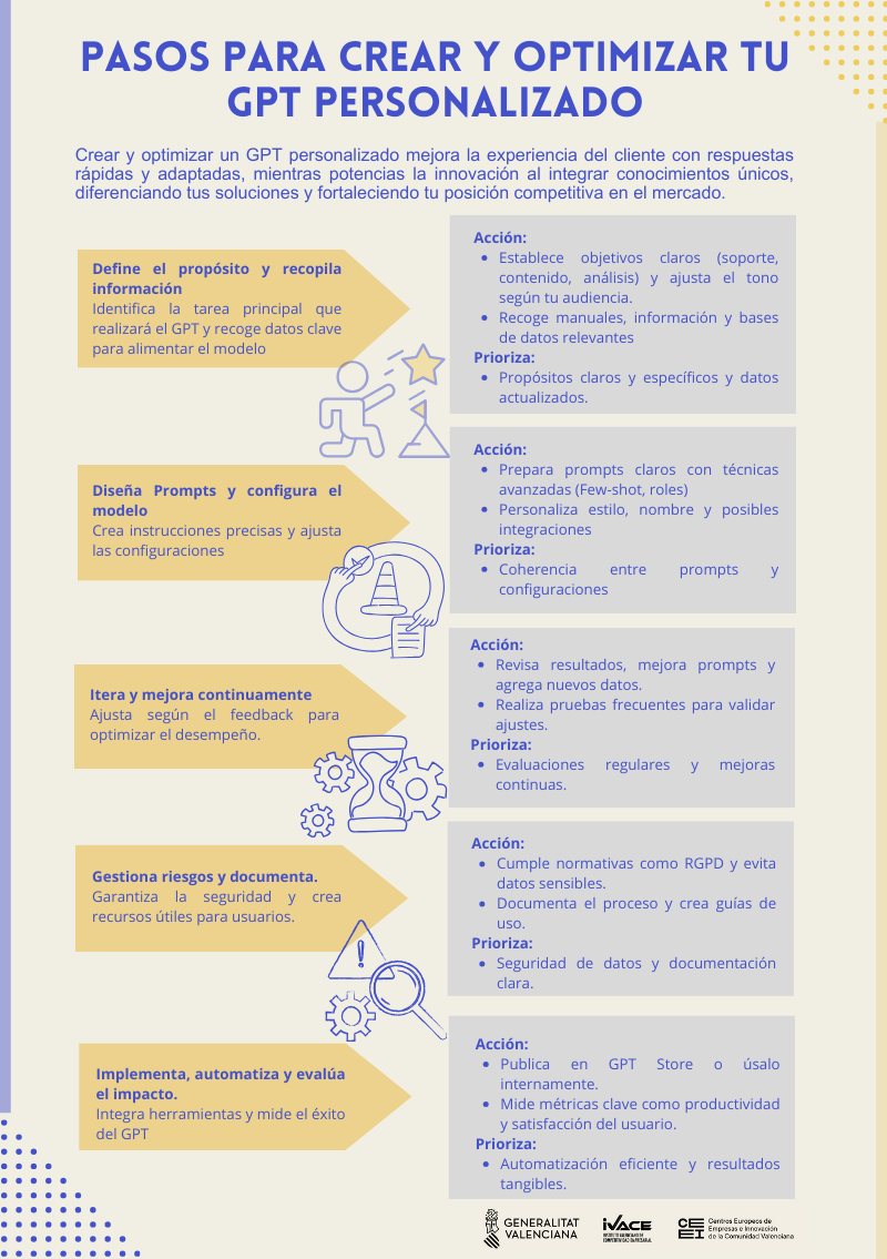 Crear y optimizar un GPT personalizado mejora la experiencia del cliente con respuestas rápidas y adaptadas, mientras potencias la innovación al integrar conocimientos únicos, diferenciando tus soluciones y fortaleciendo tu posición competitiva en el mercado.