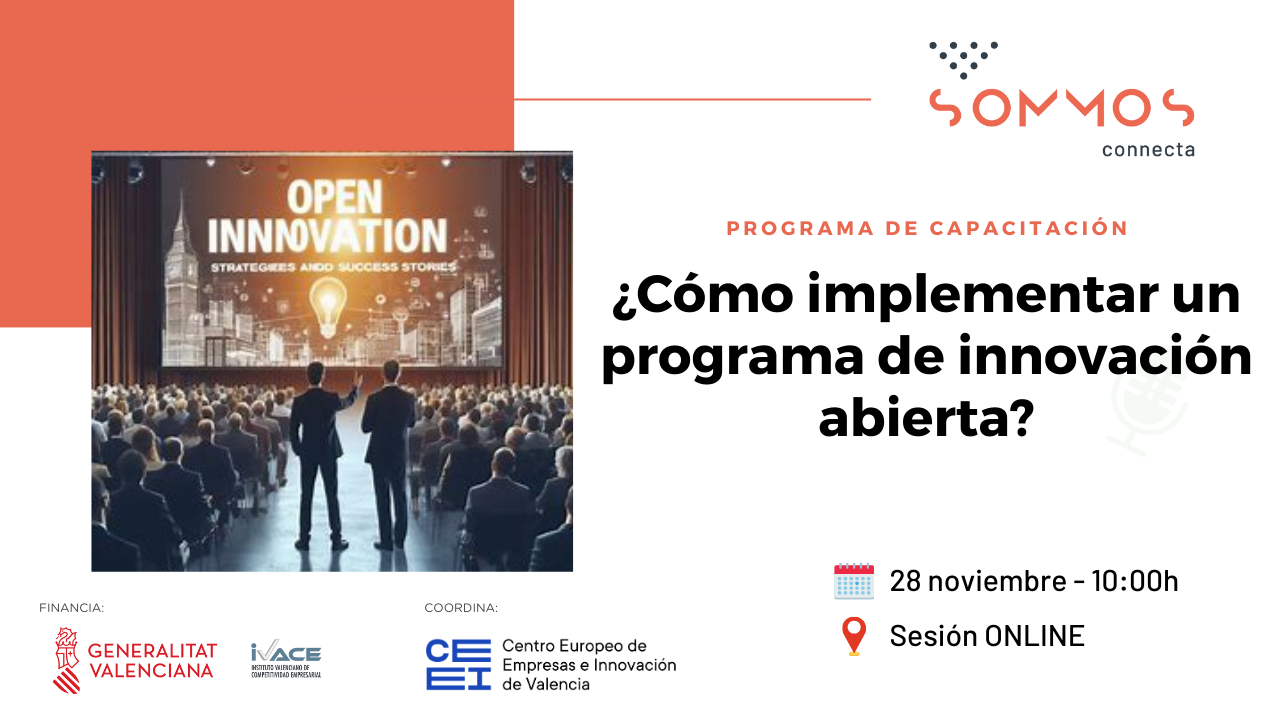 El objeto de esta sesión es capacitar, dentro del Programa SOMMOS connecta, a los Agentes del Ecosistema de Emprendimiento de la Comunitat Valenciana, para que puedan facilitar la implementación de procesos de innovación colaborativa o abierta.