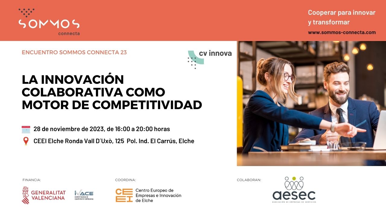 El proyecto Sommos_Connecta tiene como propósito impulsar la capacidad innovadora y la competitividad del tejido empresarial de la CV a través de la colaboración entre empresas y entidades del ecosistema emprendedor de la Comunitat Valenciana.