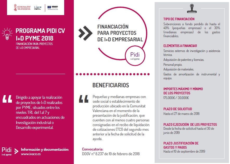 Programa ayudas PIDI CV I+D PYME 2018