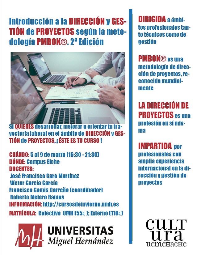 En el presente curso, se exponen los principios fundamentales y herramientas para la dirección y gestión de proyectos basados en el PMBOK®, plasmados por el Project Management Institute (PMI®) a lo largo de los años.