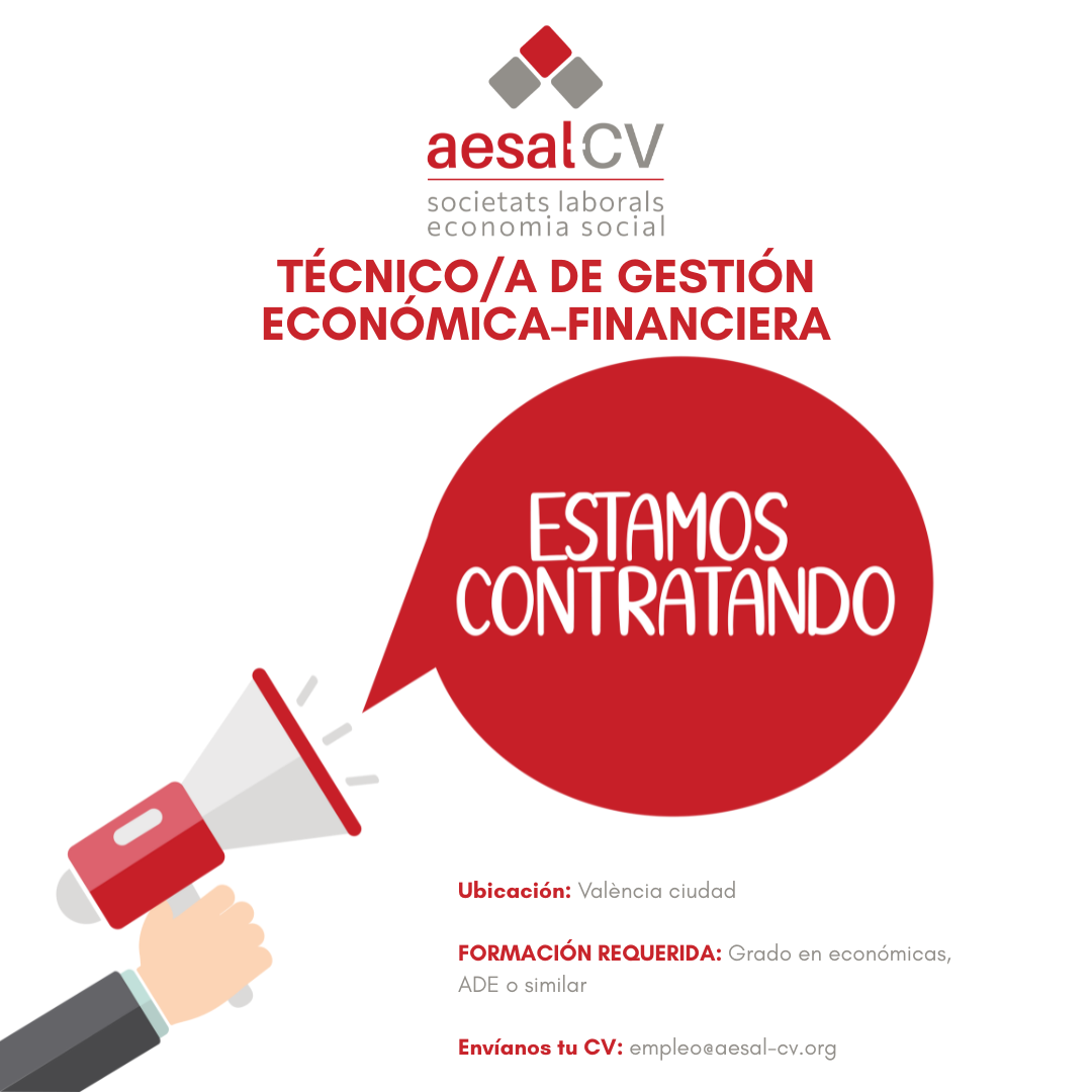 AESAL, la agrupación empresarial de Sociedades Laborales y Economía Social de la Comunidad Valenciana, busca a una persona para el puesto