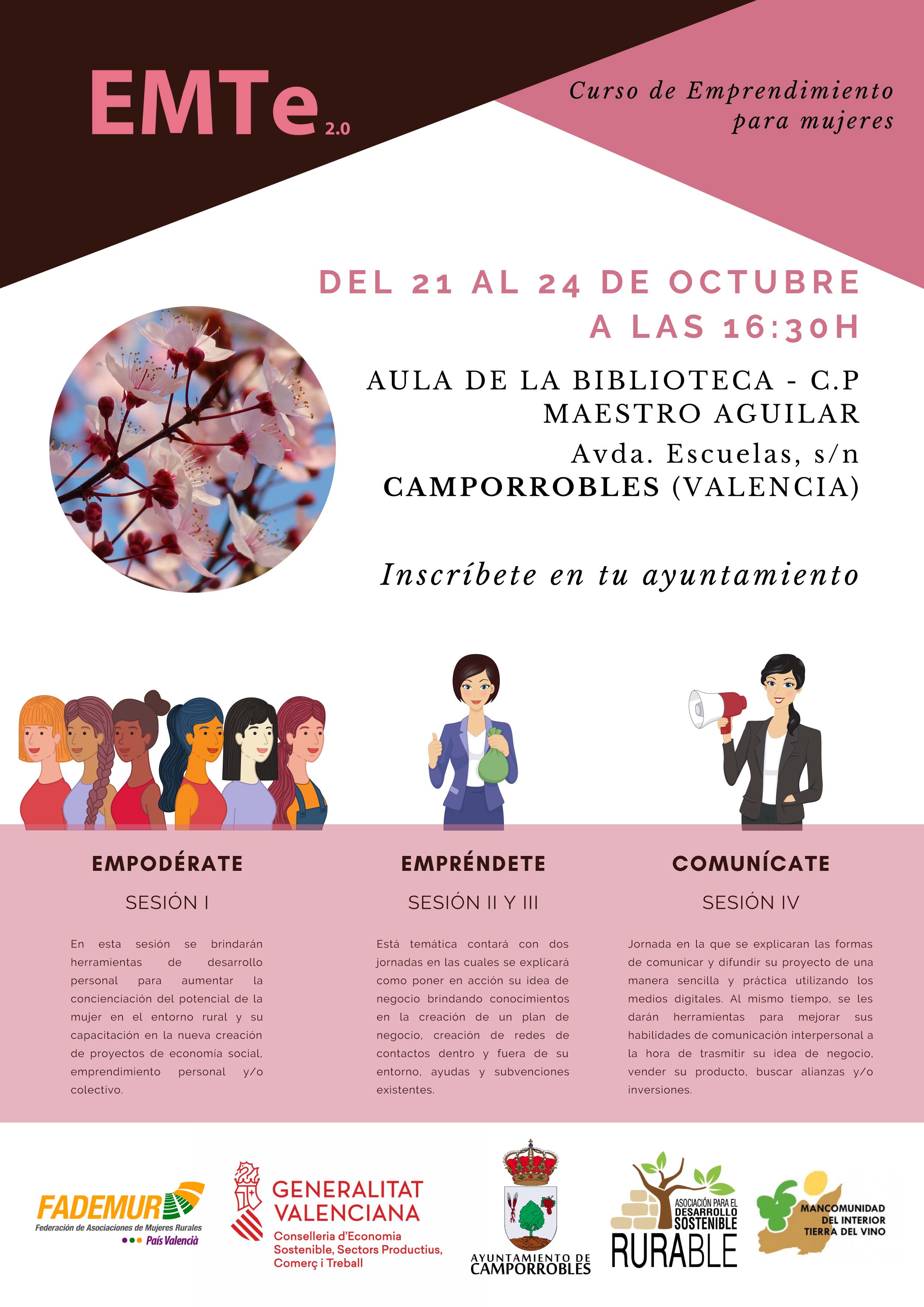 “Empodérate”, “Empréndete” y “Comunícate” son los tres bloques que estructuran el curso “EMTE 2.0” sobre emprendimiento, de 4 días de duración y dirigido a mujeres de la comarca de Utiel-Requena.
