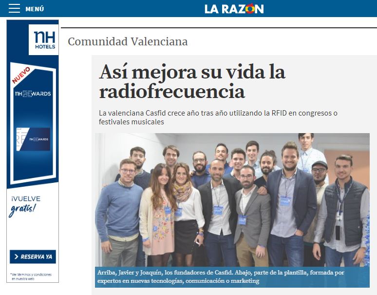 Por su parte, Casfid es noticia en el periódico La Razón con su historia de emprendimiento que ha conseguido diversificar y extender el uso de la RFID (Identificación por Radiofrencuencia) a sectores que van mucho más allá de los eventos musicales, ocio y deporte.