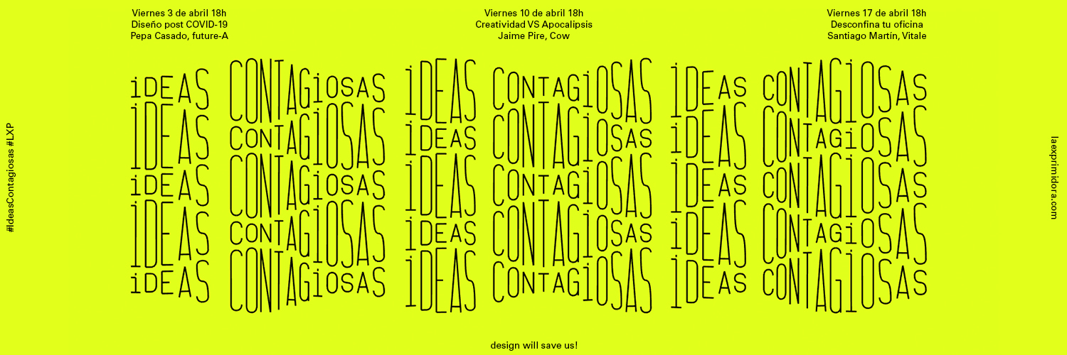 Desde La Exprimidora están preparando una serie de charlas online o webinars, para toda la comunidad creativa, para hacer más llevadero el confinamiento. Cada viernes organizaremos un encuentro virtual con creativos y diseñadores de diferentes disciplinas. El encuentro será aproximadamente de media hora y nos servirá para coger fuerzas y escuchar nuevas ideas.