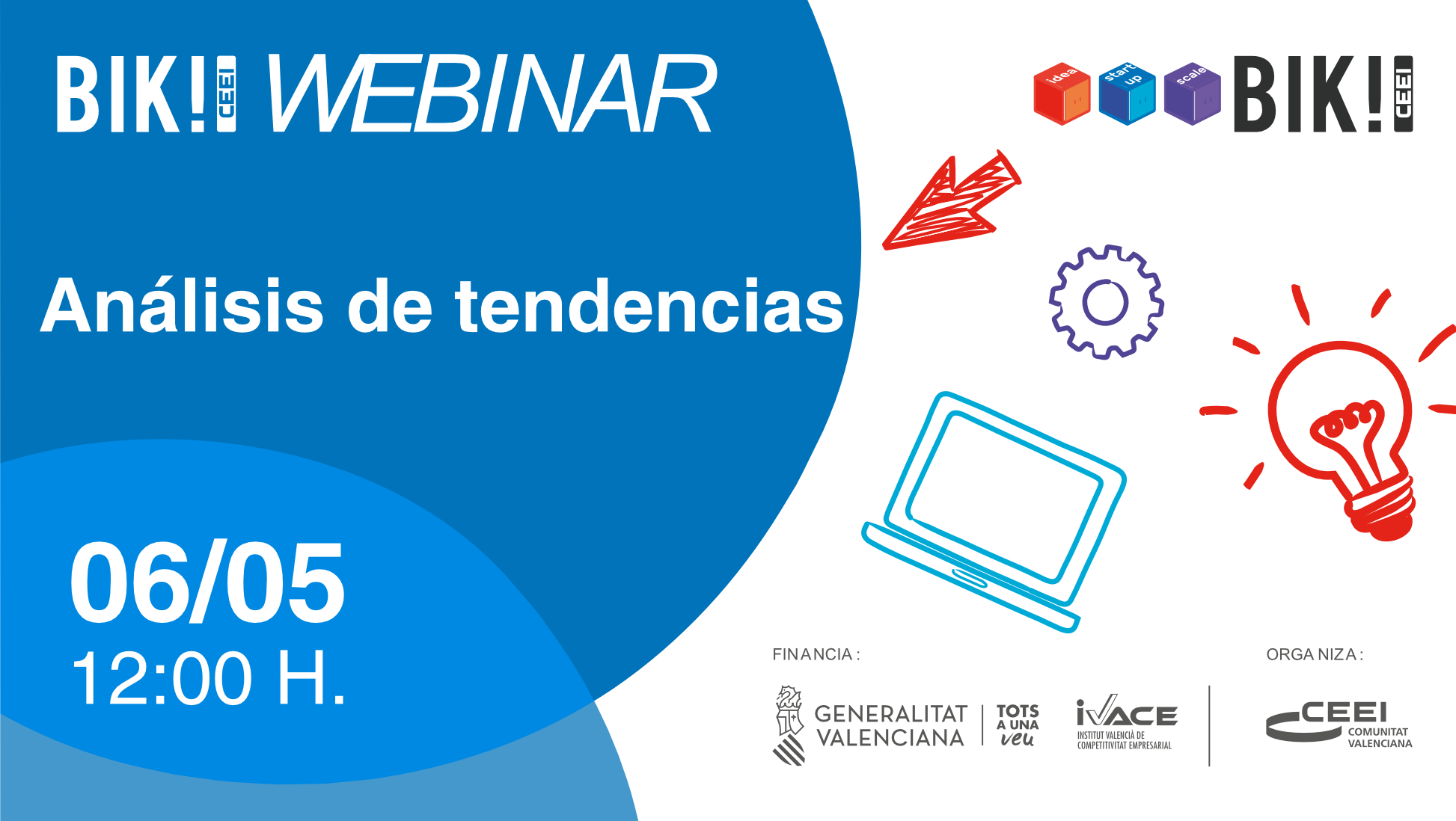 Actividad Gratuita, previa inscripción en la parte superior, iniciativa promovida y financiada por la Generalitat Valenciana, a través del Instituto Valenciano de Competitividad Empresarial (IVACE), dentro de su política de apoyo al emprendimiento innovador.