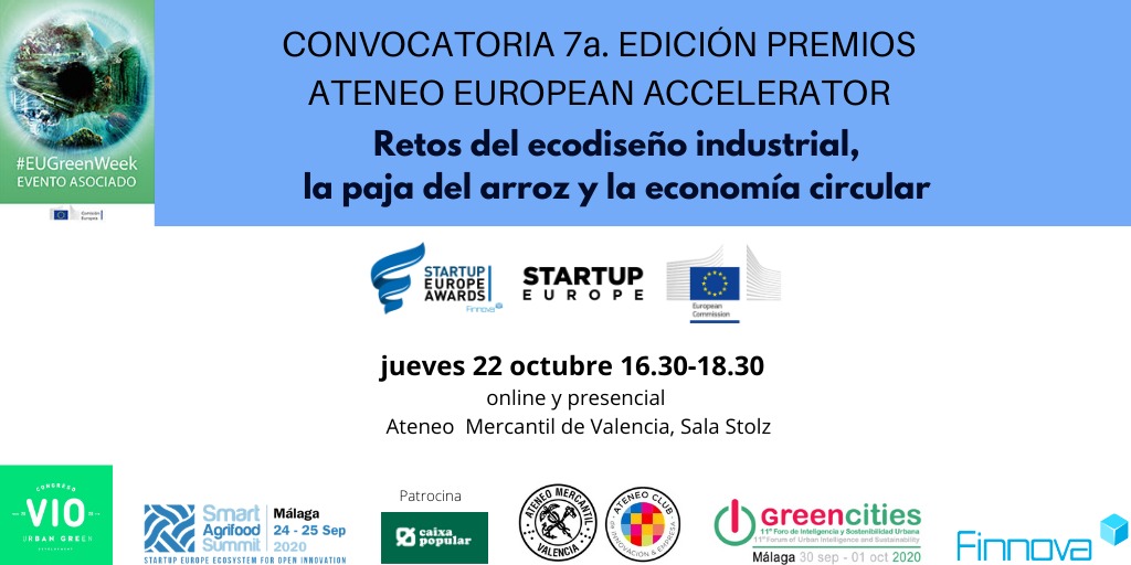 Un año más, y ya es el séptimo consecutivo, el 'Ateneo Club de Innovación y Empresa', gracias a la colaboración con la 'Fundación Finnova', el patrocinio de “Caixa Popular” y con el soporte mediático de la Unión Europea y de Valencia Activa, presenta el premio 'Ateneo StartUp Europe Accelerator 2020, que permitirá a un joven emprendedor o emprendedora impulsar su empresa en el corazón de Europa, y acceder a oportunidades de financiación, networking, movilidad, comunicación internacional, y ¡mucho más!