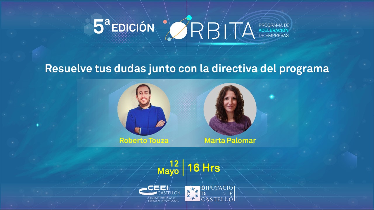 ¿Eres emprendedor? Entonces seguro que sabes aprovechar las oportunidades y ya te has inscrito a la nueva edición de Órbita. Pero por si aún no lo tienes claro, te hemos preparado una sesión con Roberto Touza, Lead Mentor del Programa Órbita y Marta Palomar, Directora de Órbita, donde resolverán las últimas dudillas y cuestiones para que os presentéis con la máxima seguridad posible.