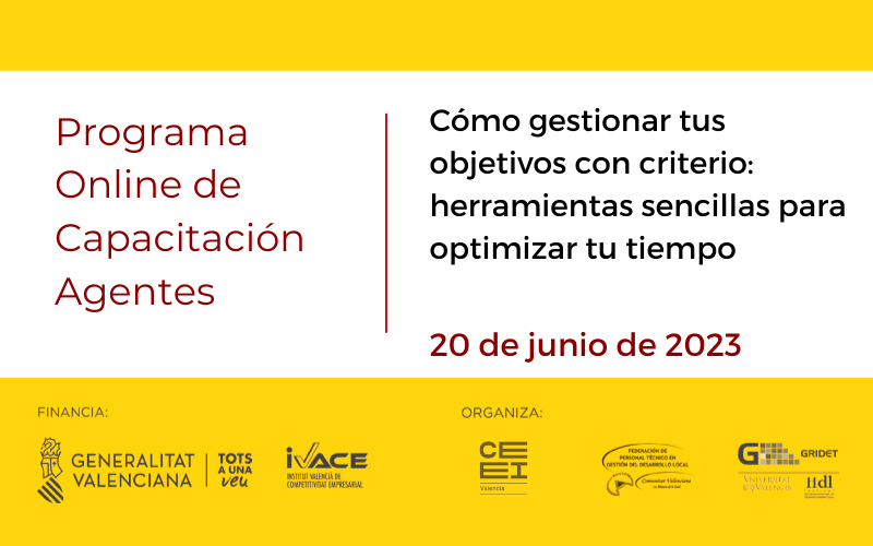 DIRIGIDO EXCLUSIVAMENTE A: Agentes del Mapa de Entidades y Servicios de Apoyo al Emprendimiento de la Comunitat Valenciana, por lo que te solicitará un código para inscripción. Si eres Agente y no dispones del código ponte en contacto con nosotros en [email protected]