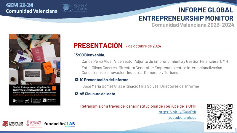 Presentación Informe GEM actividad emprendedora Comunidad Valenciana 23-24