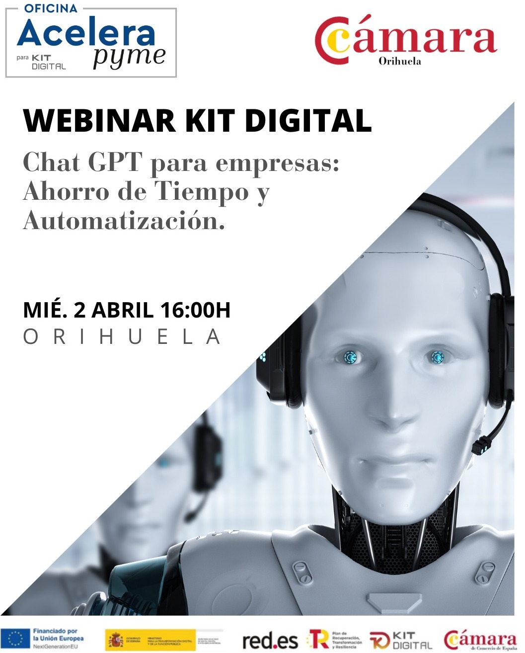 La siguiente sesión de este ciclo será el webinar CHAT GPT PARA EMPRESAS: AHORRO DE TIEMPO Y AUTOMATIZACIÓN INTELIGENTE, que se celebrará el próximo MIÉRCOLES 2 de abril a las 16:00 H.
