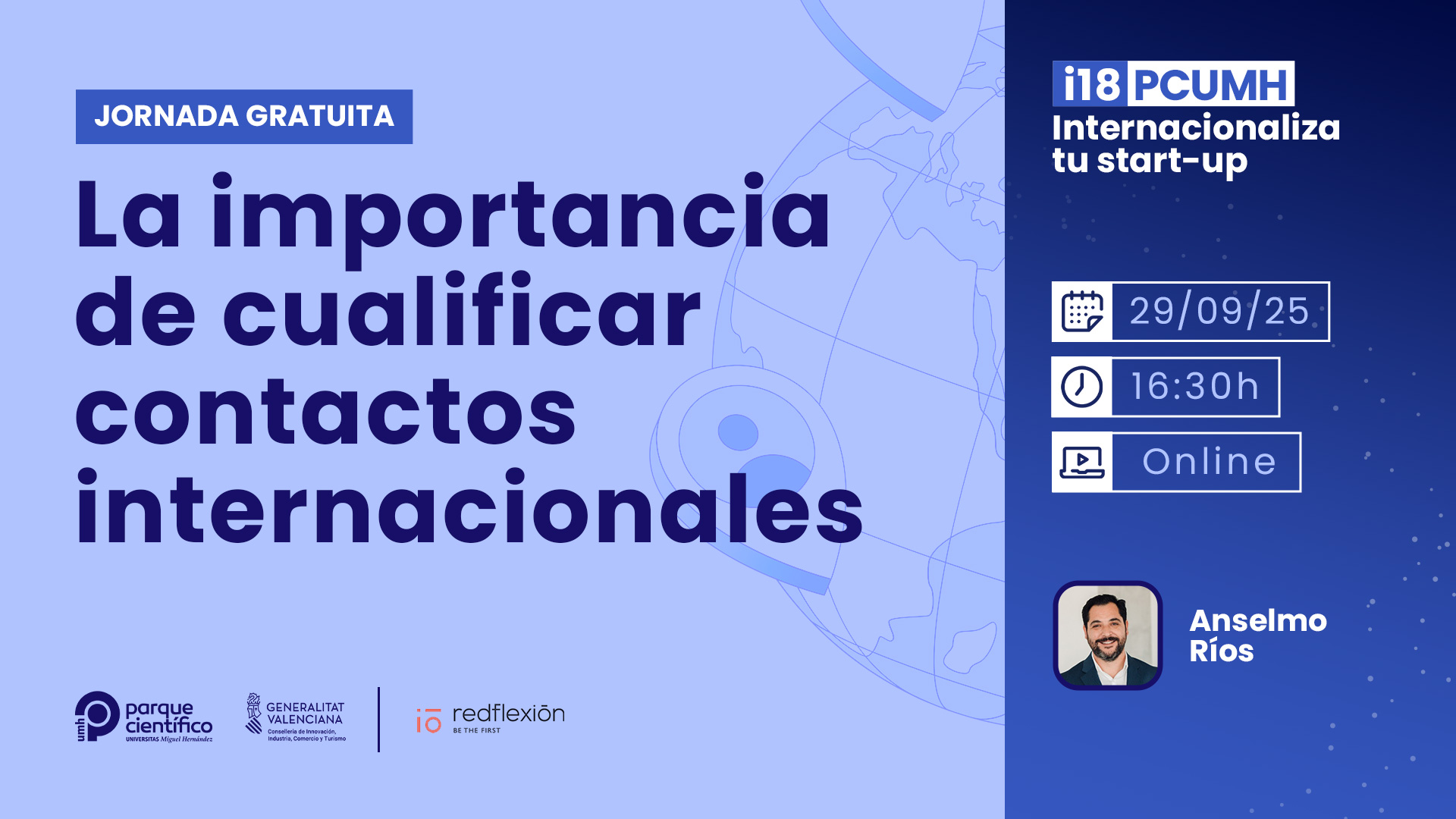 - La sesión estará a cargo de Anselmo Ríos, CEO de Redflexión Consultores, empresa especializada en inteligencia competitiva y programas para la internacionalización de empresas.