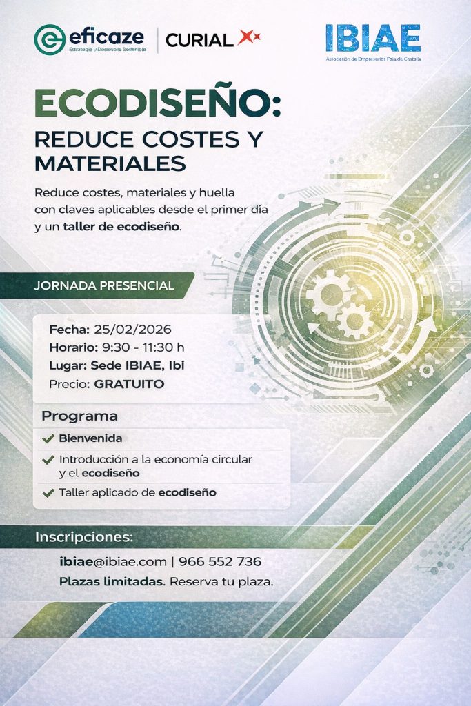 IBIAE organiza una jornada gratuita sobre ecodiseño para reducir costes y materiales en las empresas | 25 de febrero en Ibi