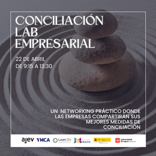 El 22 de abril de 2026 se celebrará una jornada práctica de networking sobre conciliación, organizada por AJEV, Universidad Europea de Valencia, LEAN-DO y YMCA. El encuentro está diseñado como un espacio participativo en el que las empresas podrán compartir medidas reales de conciliación que ya han implementado con éxito.