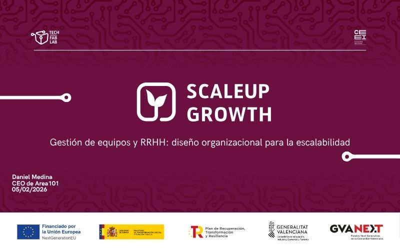 Scale Up Growth forma parte del proyecto Tech FabLab Comunicad Valencia, enmarcado en el proyecto RETECH (Redes Territoriales de Especialización Tecnológica), que fomenta proyectos de empresas tecnológicas basados en inteligencia artificial y otras tecnologías avanzadas. Los objetivos de Tech FabLab CV son promover el desarrollo empresarial en el ámbito de la innovación tecnológica, impulsar el crecimiento de scaleups en la Comunidad Valenciana y alentar la aparición de spin-offs corporativas en el panorama regional.
