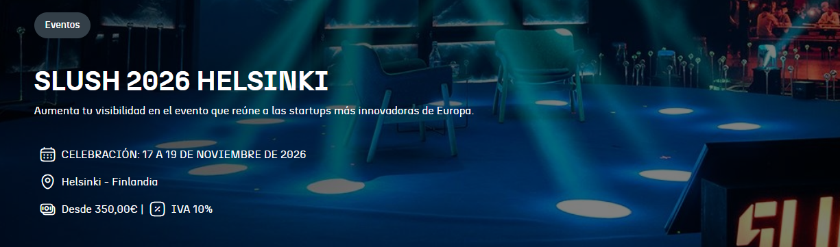 • Tu empresa no pasará desapercibida en Slush 2026: Expondrás en una ubicación privilegiada dentro de la feria, con el poder de atracción de un pabellón nacional agrupado, y arropado por el resto de empresas del ecosistema español.