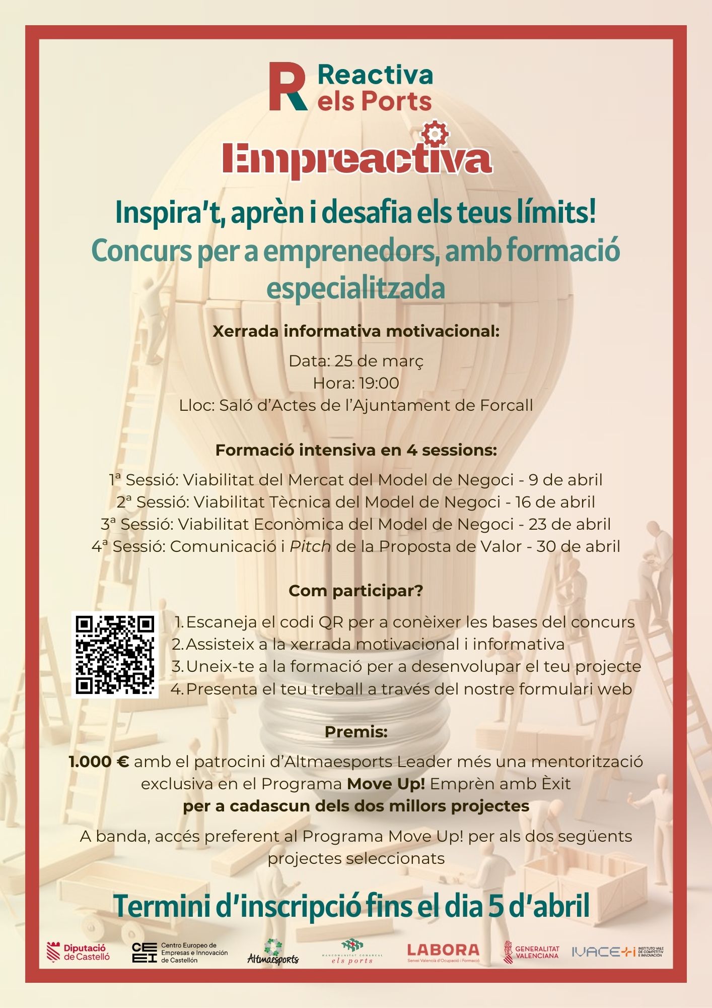 El pacte territorial per l’ocupació de la comarca dels Ports (Reactiva els Ports), el Grup d’Acció Local Altmaesports Leader i el Centre Europeu d’Empreses i Innovació de Castelló (CEEI Castelló) organitzen este concurs d’emprenedors, tenint com a objectiu coordinar iniciatives per a recolzar projectes empresarials, socials o mediambientals en els municipis que integren el seu territori, promovent d'esta manera la innovació, la generació d'ocupació, la retenció de població i el foment d'una cultura emprenedora que siga respectuosa amb l'entorn, i que incidisca directament a les comarques de Els Ports i Alt Maestrat.