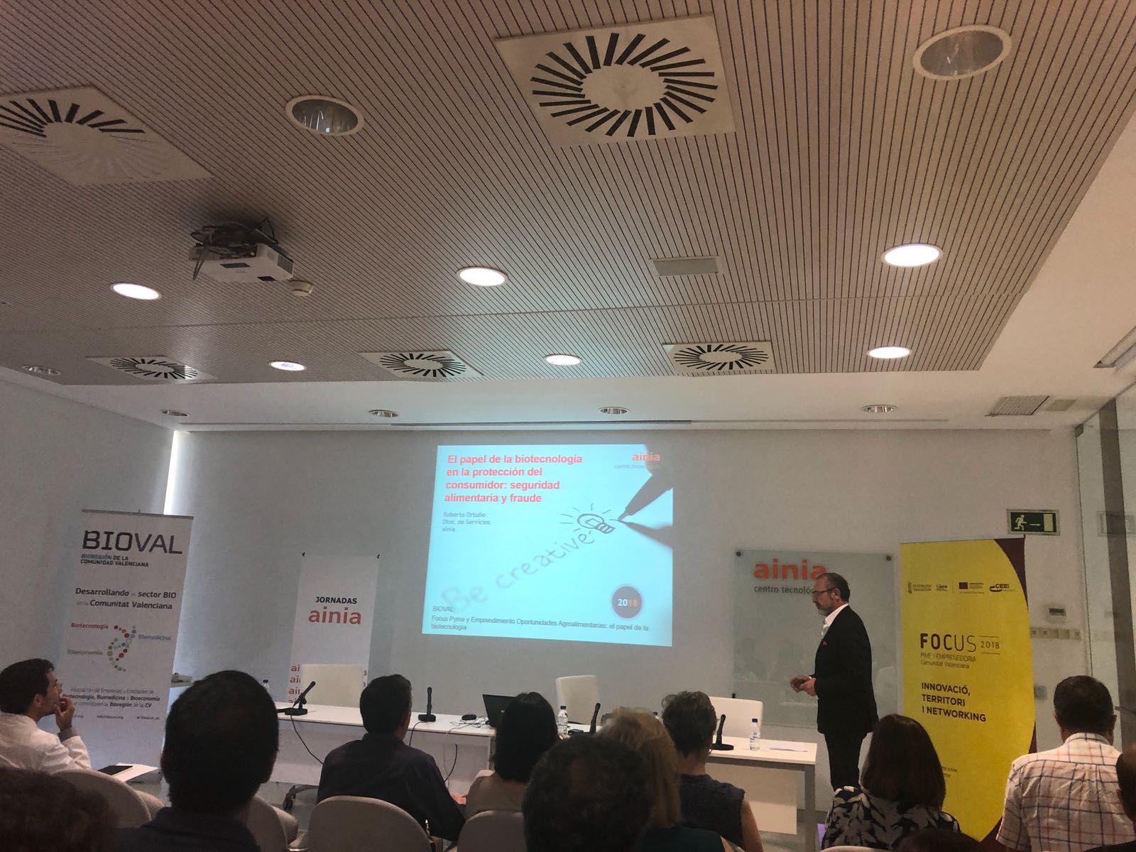 Encuentro Focus Pyme y Emprendimiento "Oportunidades agroalimentarias el papel de la biotecnología", celebrado en el Salón de Actos de AINIA con el objetivo de generar un foro de discusión y de networking sobre cómo la biotecnología contribuye a mejorar sus productos, procesos y servicios. Organizado por el clúster BIO valenciano BIOVAL y AINIA, en colaboración con el CEEI Valencia, IATA, IVIA e Idai Nature.