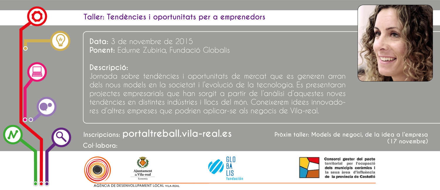 Taller enmarcado dentro del programa Itinerario del Emprendedor Innovador que Globalis, junto al Ajuntament de Vila-real, la Agencia de Desarrollo Local y el Pacto por la Cerámica, han confeccionado y enfocado a la creación de empresas innovadoras y a mejorar las aptitudes emprendedoras y de gestión de empresas.