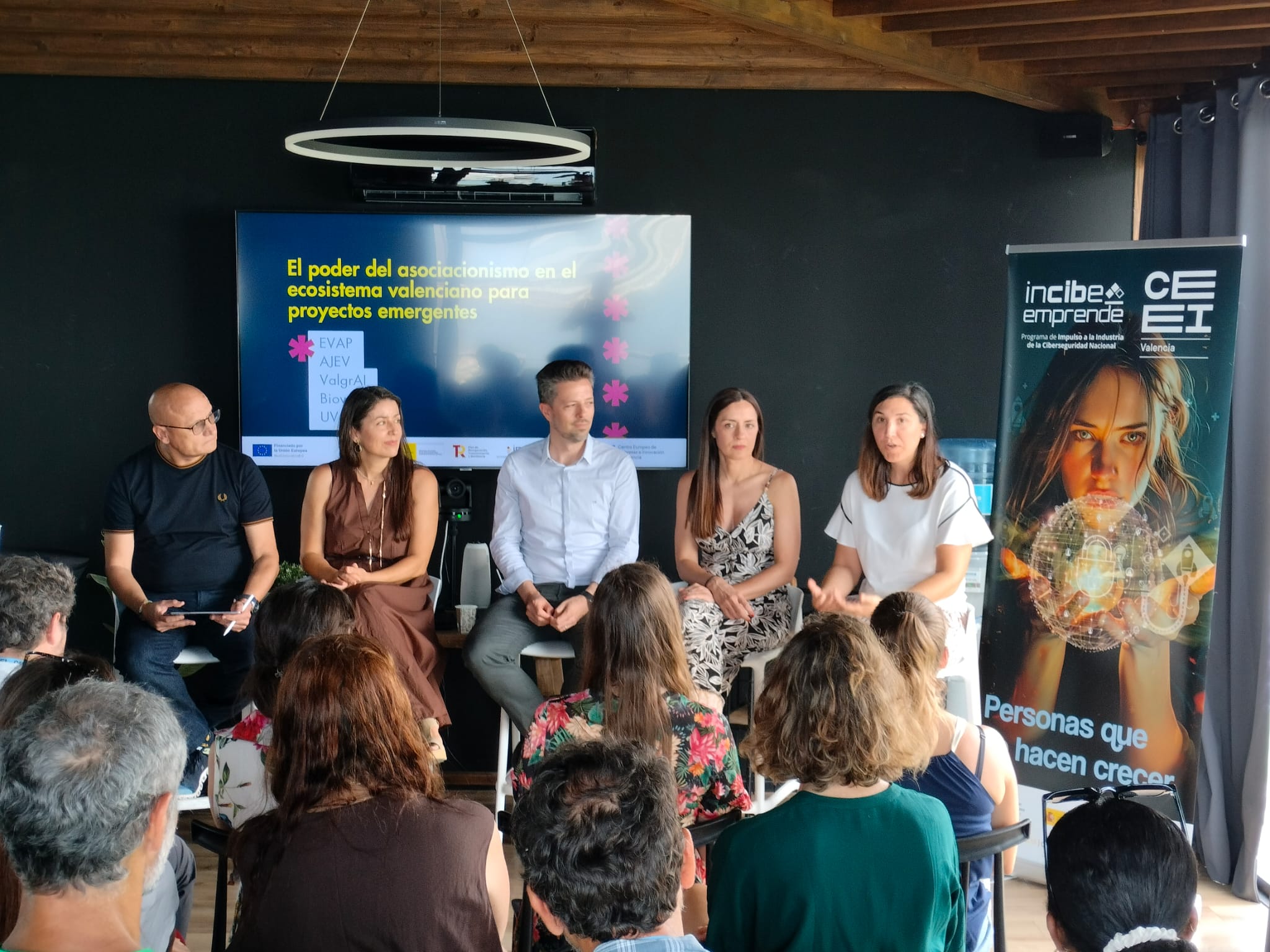 Como cierre de la jornada, se celebró una mesa redonda bajo el título “El poder del asociacionismo en el ecosistema valenciano para proyectos emergentes”, en la que distintas voces del entorno emprendedor compartieron su visión sobre cómo la colaboración y las redes pueden potenciar el desarrollo y sostenibilidad de nuevas iniciativas.