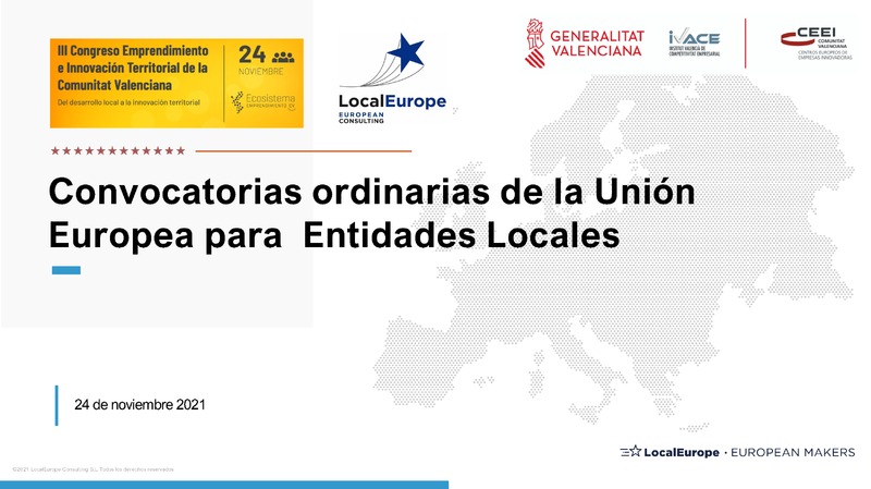 Convocatorias ordinarias de la Unión Europea para Entidades Locales.