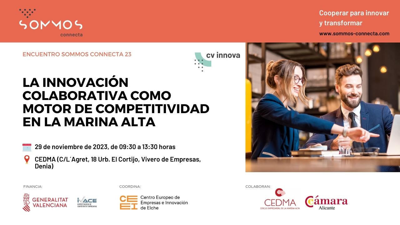 El proyecto Sommos_Connecta tiene como propósito impulsar la capacidad innovadora y la competitividad del tejido empresarial de la CV a través de la colaboración entre empresas y entidades del ecosistema emprendedor de la Comunitat Valenciana.