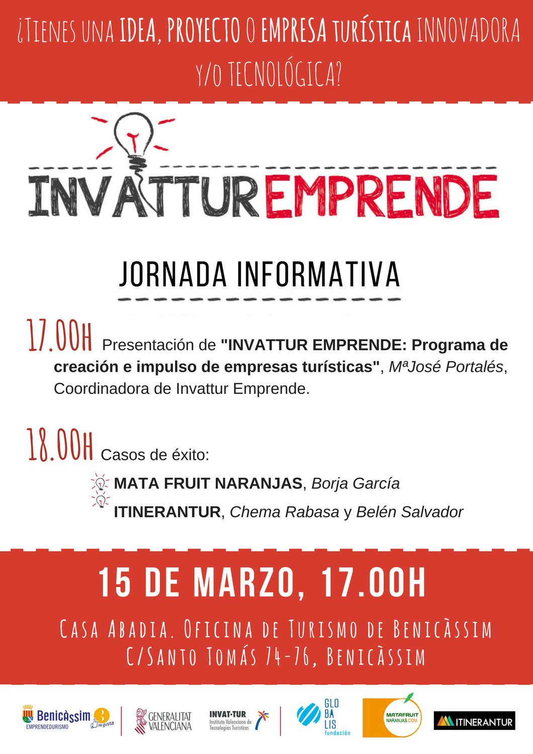 Además, en la jornada, participarán Borja García, Director Comercial de MataFuitNaranjas, y Belén Salvador junto con Chema Rabasa, CEOs de Itinerantur, las dos empresas castellonenses adheridas actualmente al Programa Invattur Emprende.