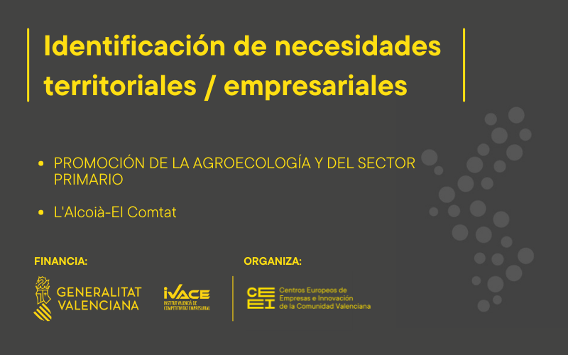 Mancomunitat de Municipis de l'Alcoià i el ComtatCámara de Comercio de AlcoyJovempa Alcoià Comtat i FoiaInstituto Ideas. Campus Alcoi. Universitat Politècnica de ValènciaAITEXAjuntament d'AlcoiAEDL Ajuntament de MuroAEDL Ajuntament BanyeresAEDL Ajuntament de CocentainaActaio | Acord Territorial per a l’Ocupació i el Desenvolupament Local Alcoi · Ibi · OntinyentFundación NovaterraGAL Rural Muntanya d'Alacant