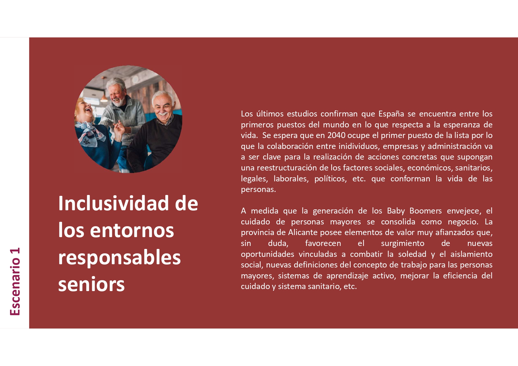 1. Escenario "Inclusividad de entornos responsables seniors", en un contexto de uso que plantea: