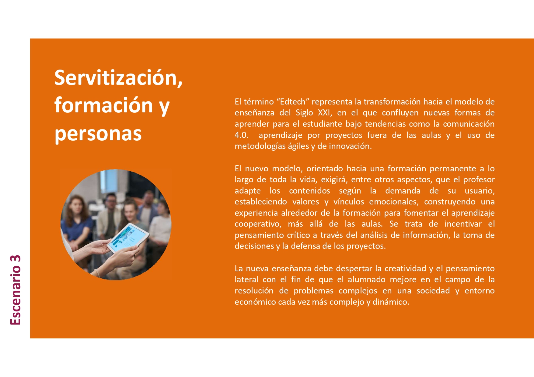 3. Escenario "Servitización, formación y personas" en un contexto de uso que plantea: