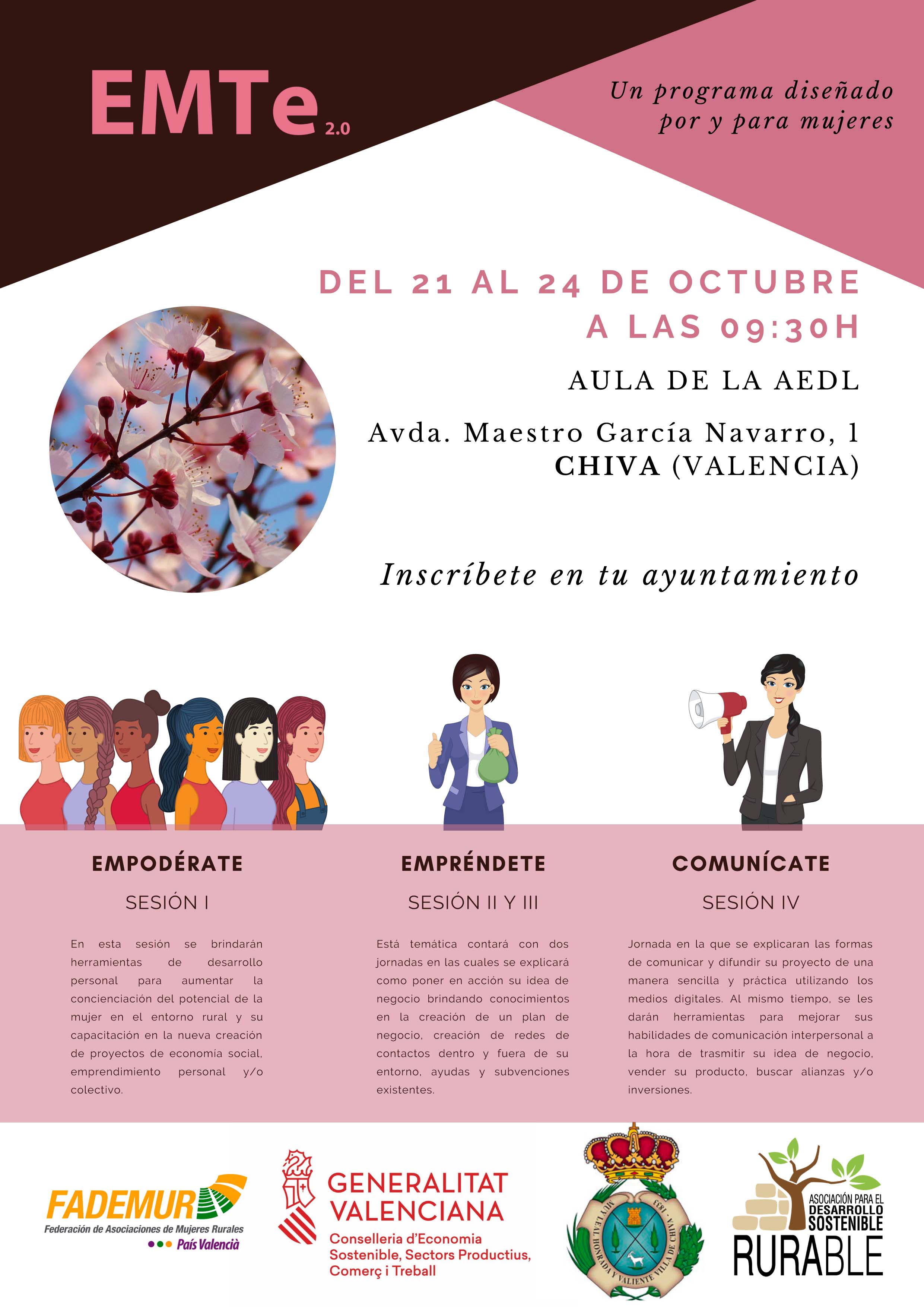 El programa EMTe cuyo nombre completo es ‘Tejiendo redes entre mujeres en medio rural para empoderarte, emprender y conectar’, va dirigido a mujeres rurales de toda la Comunidad Valenciana