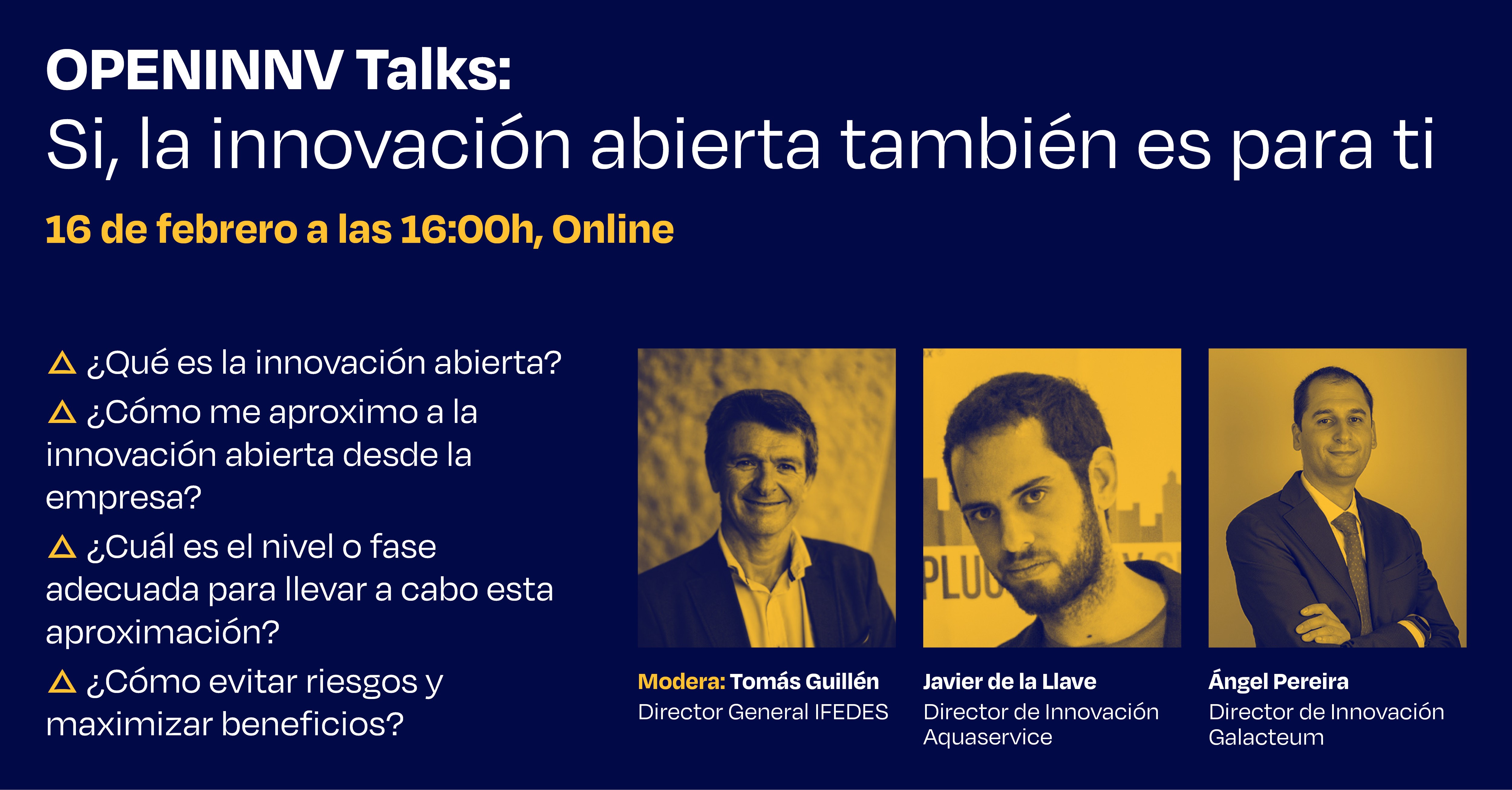 El próximo día 16 de febrero a las 16:00h presentamos OPENINNV TALKS, la nueva serie de webinars de promoción y difusión de la innovación abierta.