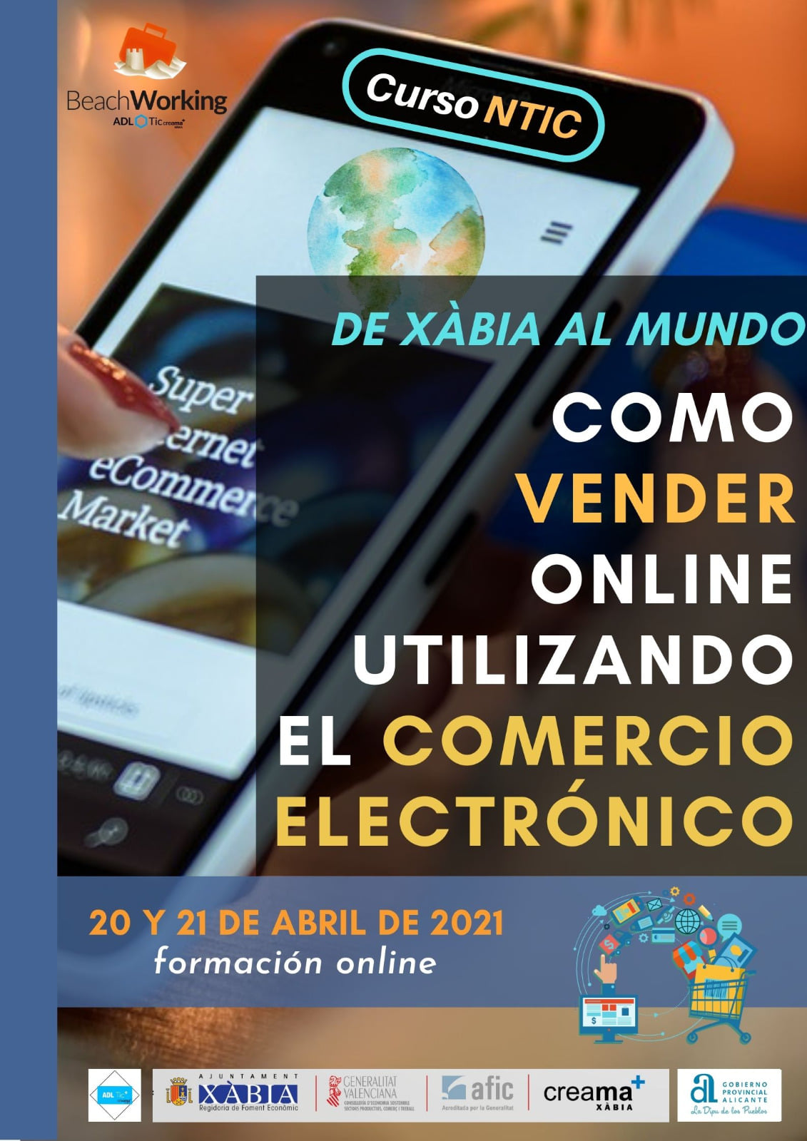 Arranca una semana más la programación del ADL TECNOLOGICO de Creama Xàbia con un curso basado en la venta online para autónomos y pymes. El titulo es "De Xàbia al mundo. Como vender online utilizando el Comercio Electrónico" y se realizará, en formato online, los días 20 y 21 de abril. En este curso se abordaran los aspectos principales que llevan a una tienda, autónomo o empresario a llevar su proyecto al online y como poder hacer crecer su negocio con las herramientas que existen actualmente para facilitar este objetivo. Con la pandemia hemos visto un incremento exponencial de las ventas por internet, por lo que es una oportunidad de oro para formarse y adaptarse a las nuevas tendencias del siglo XXI.