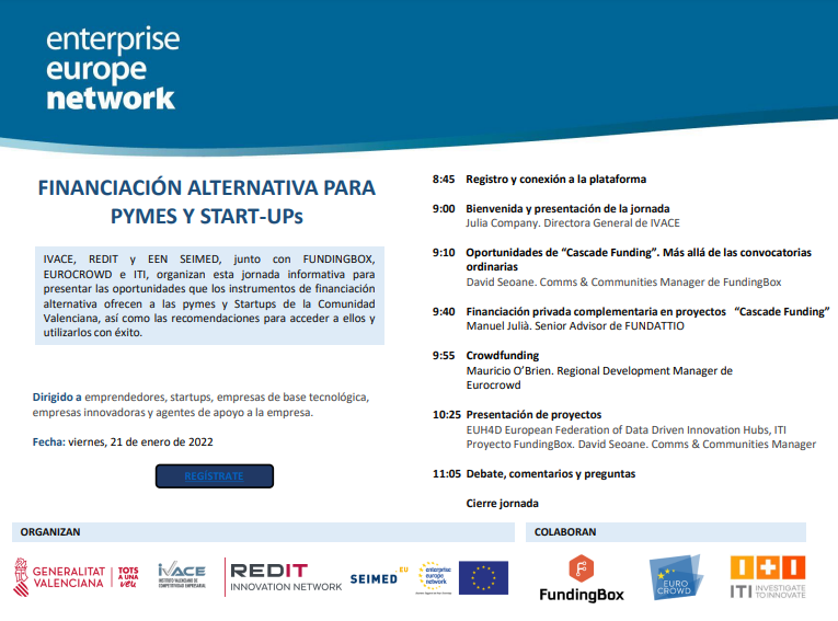 Presentar las oportunidades que los instrumentos de financiación alternativa ofrecen a las pymes y Startups de la Comunidad Valenciana, así como las recomendaciones para acceder a ellos y utilizarlos con éxito.