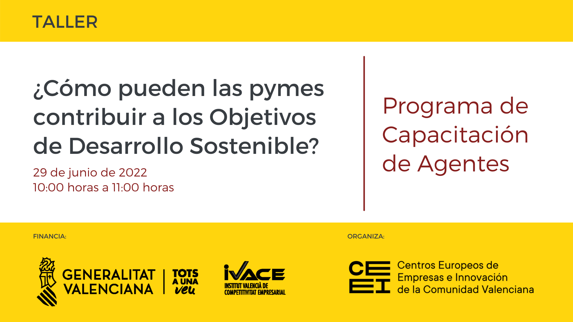 Esta acción se enmarca dentro del Programa de Fortalecimiento de agentes del ecosistema de emprendimiento de la Comunidad Valenciana, actividad promovida y financiada por la Generalitat Valenciana, a través del Instituto Valenciano de Competitividad Empresarial (IVACE), dentro de su política de apoyo al emprendimiento innovador.