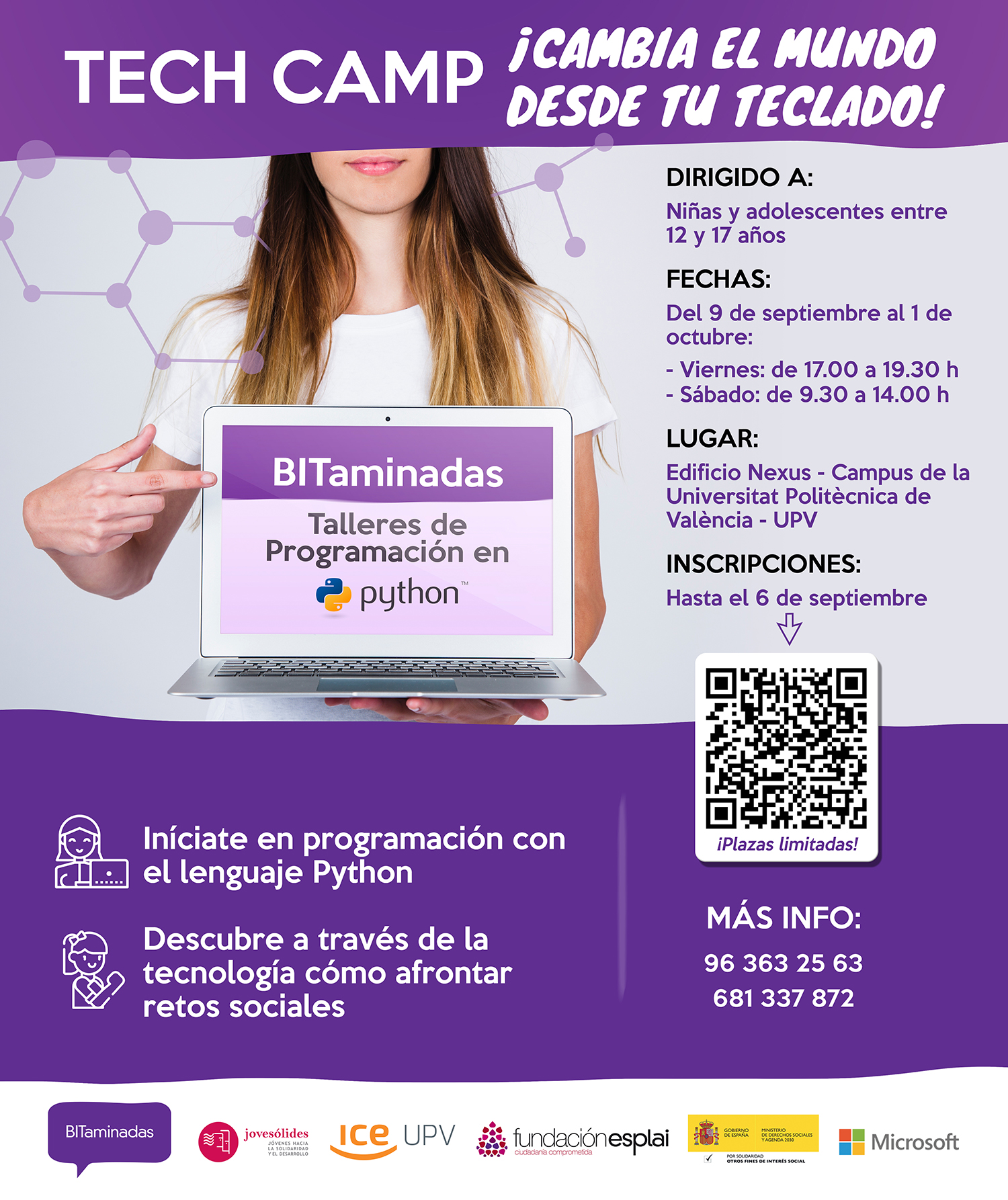 Tech Camp una formación de 35 horas que busca fomentar los itinerarios profesionales STEM (Science, Technology,  Engineering and Mathematics), la conciencia social y el empoderamiento entre las mujeres jóvenes.
