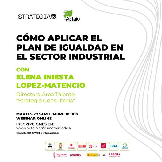 El próximo martes, 27 de septiembre a las 10:00h tendrá lugar la sesión Cómo aplicar el plan de igualdad en el sector industrial.