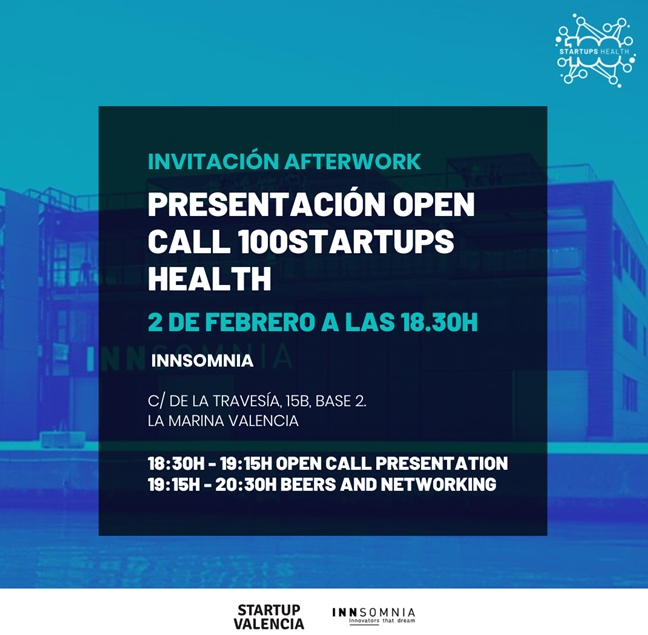 Innsomnia y Startup Valencia te invitan al afterwork de presentación de la Open Call para startups de 100Startups Health