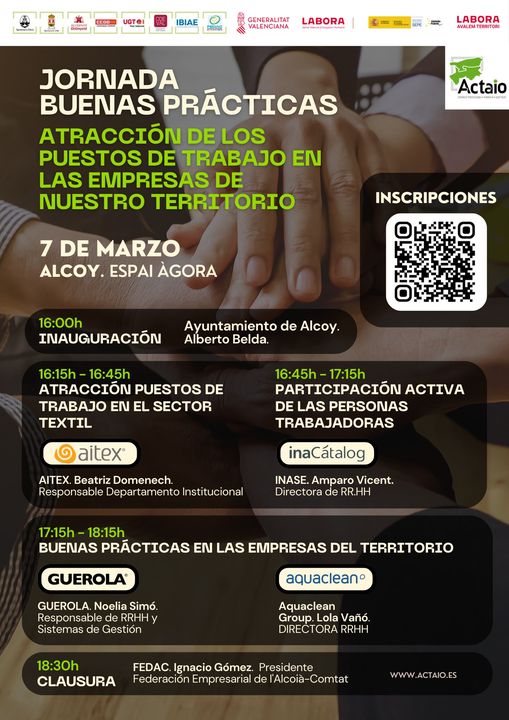Se trata de una jornada en la que difundiremos propuestas y experiencias de las empresas del territorioparticipación de los trabajadores en la empresa y herramientas de Buenas Prácticas en la atracción de talento (calidad en el empleo, medidas de conciliación y flexibilización horaria, beneficios sociales, etc.)