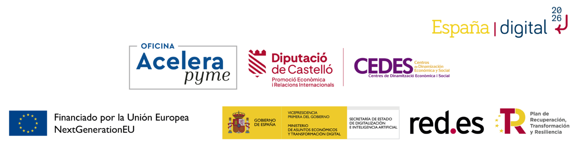 Las actuaciones están financiadas por el Plan de Recuperación, Transformación y Resiliencia a través de los fondos Next Generation EU, en el marco de la agenda España Digital 2025 y el Plan de Digitalización de Pymes 2021-2025, cuya cuarta medida del eje de actuación “Digitalización básica para las PYMESs”, incluye la creación de una red de Oficinas Acelera pyme.