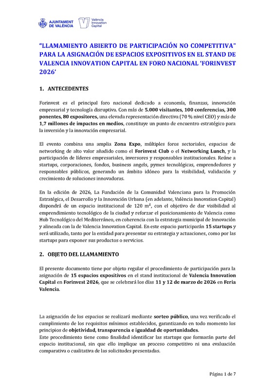 “LLAMAMIENTO ABIERTO DE PARTICIPACIÓN NO COMPETITIVA” PARA LA ASIGNACIÓN DE ESPACIOS EXPOSITIVOS EN EL STAND DE VALENCIA INNOVATIO