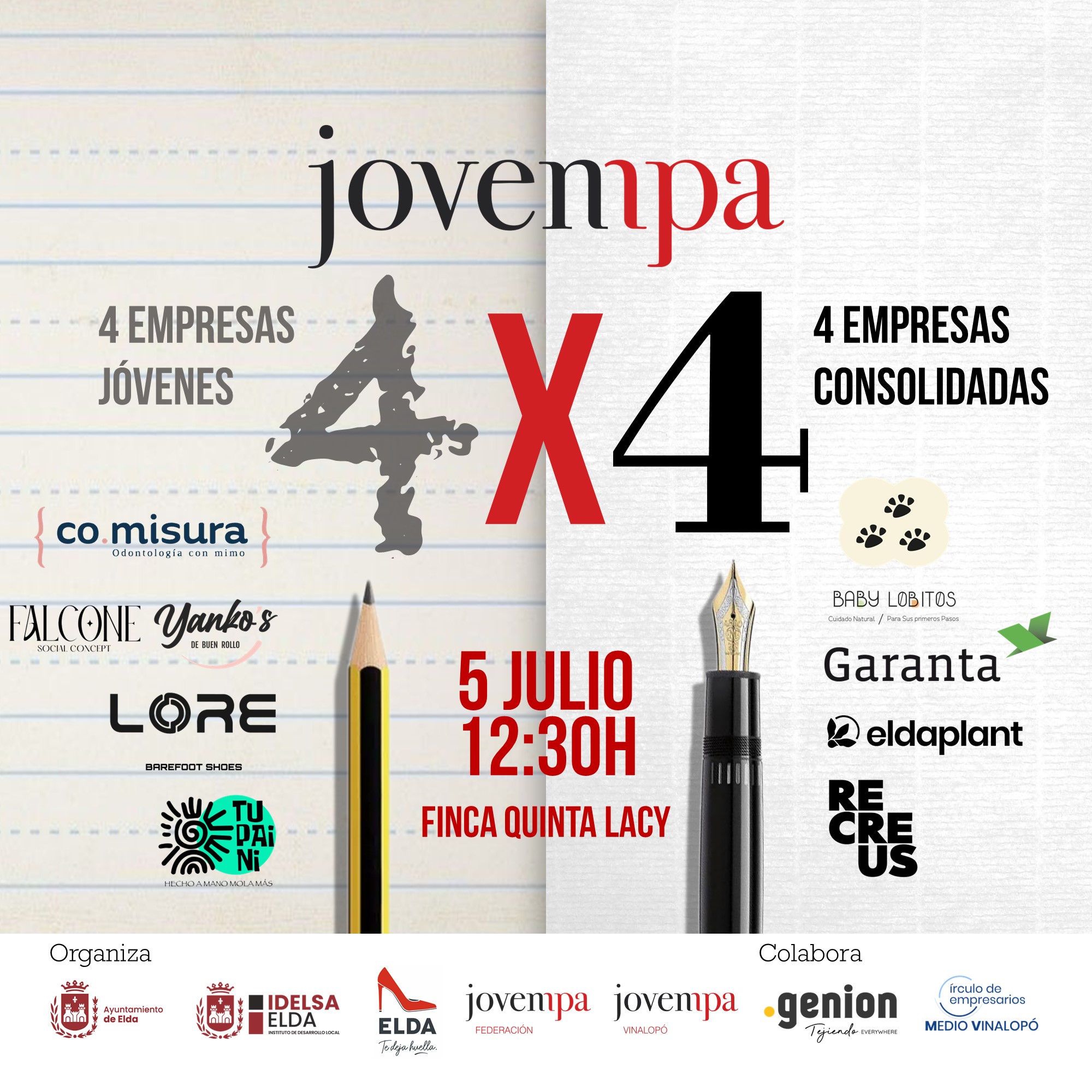 Jovempa 4×4 es un punto de encuentro para compartir experiencias y talento entre 4 empresas consolidadas y 4 empresas jóvenes de la comarca. En el evento se presentarán  las 8 empresas protagonistas de esta edición, entrevistas en directo y se servirá un cóctel al finalizar el acto.