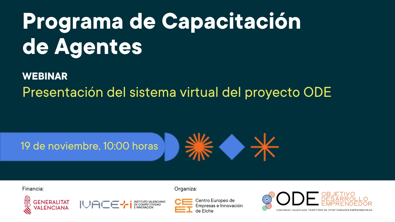 Esta acción se enmarca dentro del Programa de Fortalecimiento de agentes del ecosistema de emprendimiento de la Comunidad Valenciana, actividad promovida y financiada por la Generalitat Valenciana, a través del Instituto Valenciano de Competitividad e Innovación (IVACE+i), dentro de su política de apoyo al emprendimiento innovador.