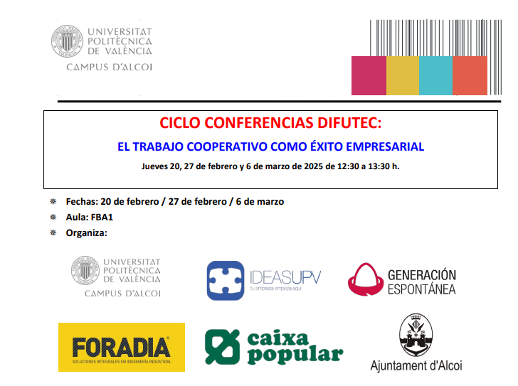 Ciclo Conferencias DIFUTEC: Los jueves 20 y 27 de febrero, y 6 de marzo en Alcoy