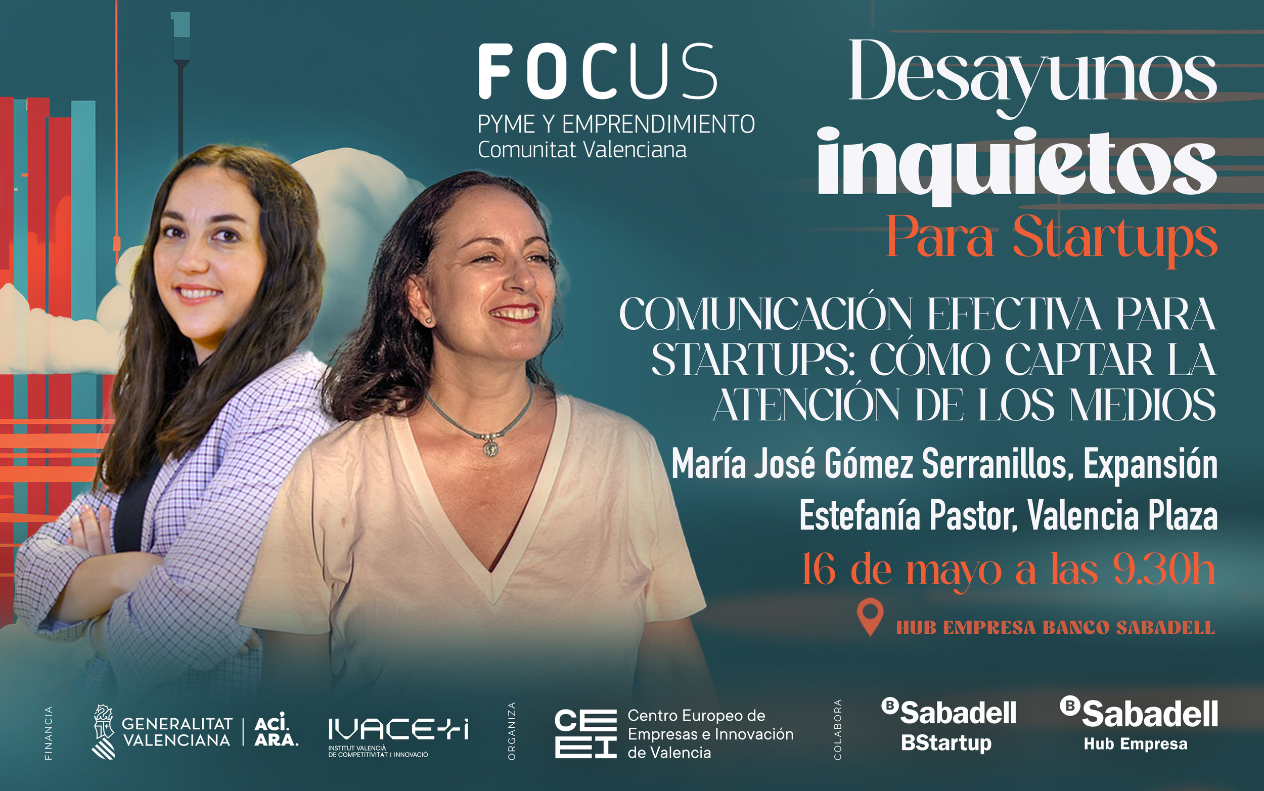 Desayuno Inquieto, es una iniciativa de CEEI Valencia, promovida y financiada por la Generalitat Valenciana, a través del Instituto Valenciano de Competitividad Empresarial e Innovación (IVACE+i), dentro de su política de apoyo al emprendimiento innovador y con la colaboración del Hub Sabadell.