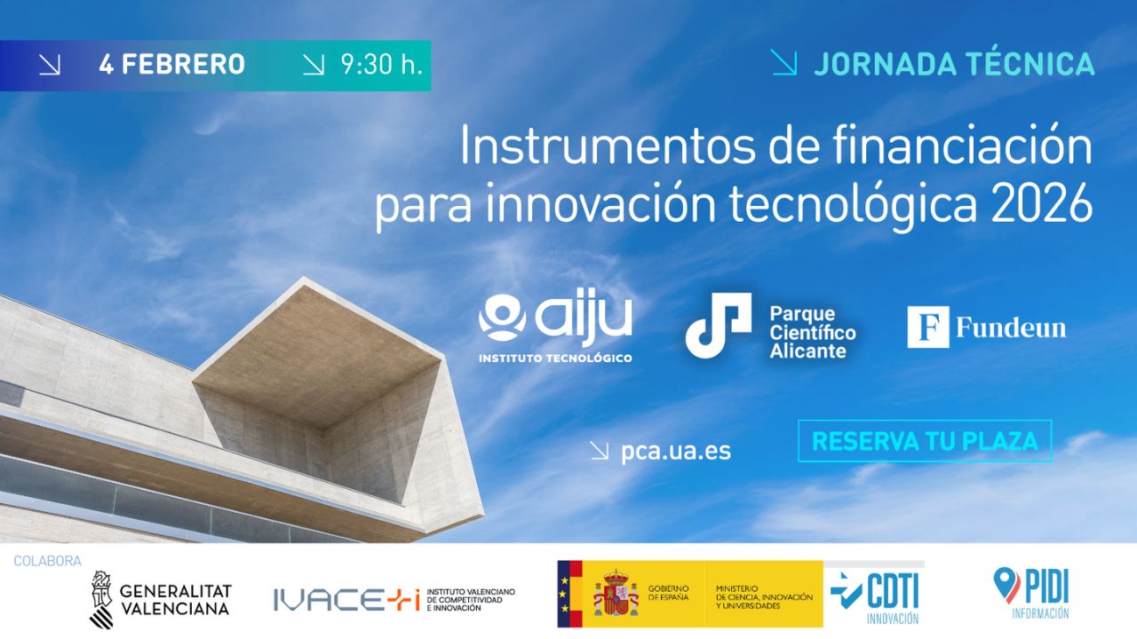 El 4 de febrero de 2026, el Parque Científico de Alicante acoge una jornada clave para empresas innovadoras que buscan financiación para sus proyectos de innovación. Durante esta actividad, se presentarán las principales líneas de apoyo económico tanto a nivel nacional como autonómico para 2026, con especial énfasis en las novedades y oportunidades para los próximos años.