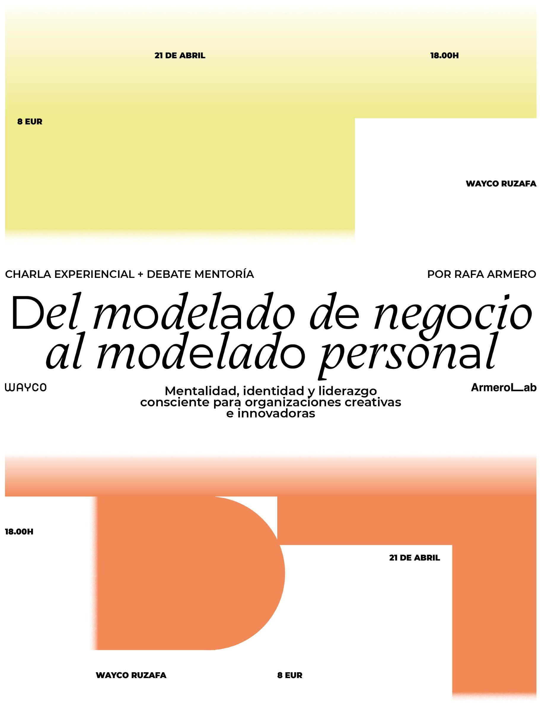 El 21 de abril, en Wayco Ruzafa, se celebrará una sesión práctica y participativa con Rafael Armero, coach y facilitador en innovación personal y transformación creativa. La jornada propone un enfoque poco habitual pero cada vez más necesario: cómo alinear nuestro crecimiento personal con la gestión y desarrollo de nuestros proyectos profesionales.