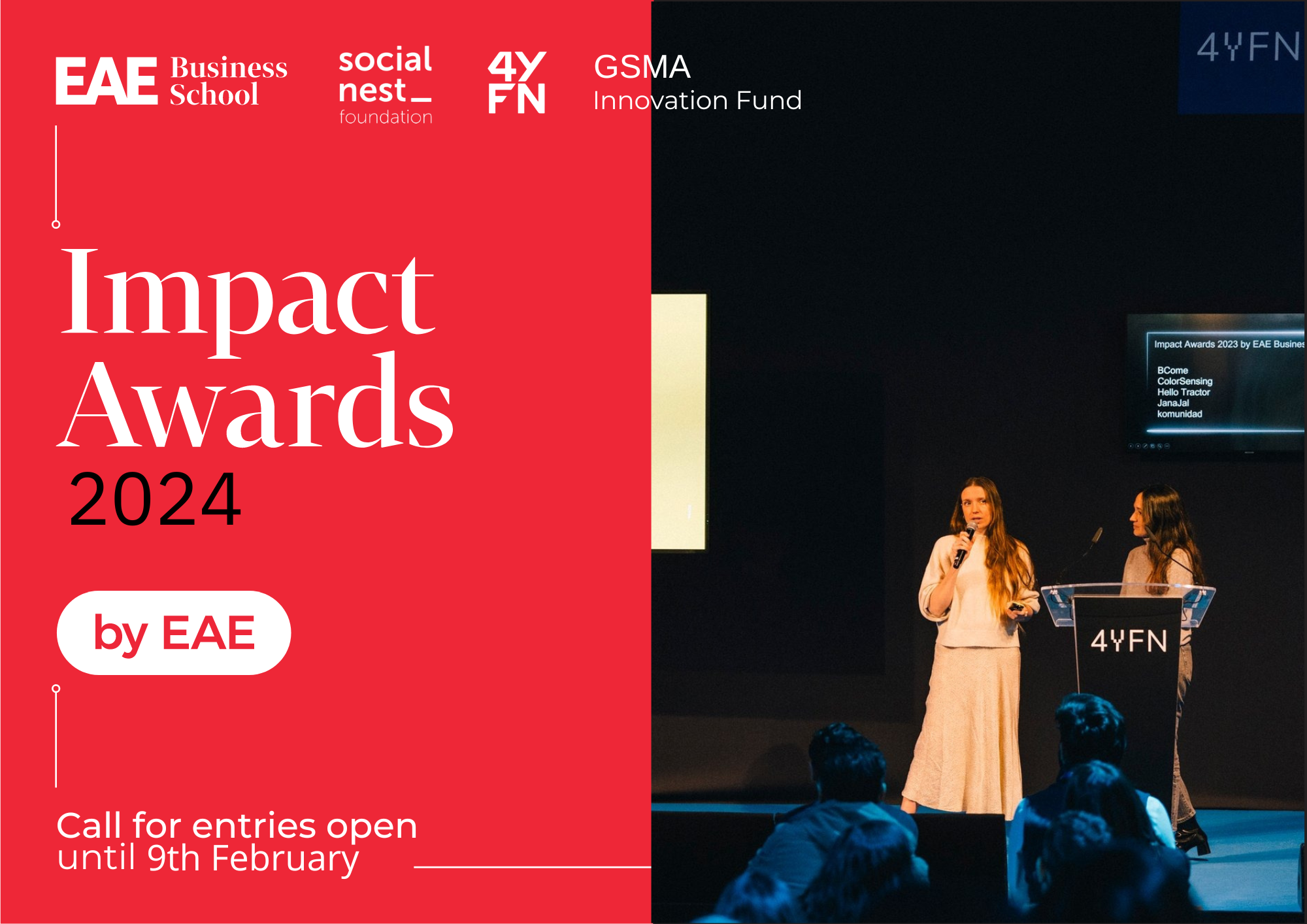 Organizados por EAE Business School, Social Nest Foundation y GSMA Innovation Fund, los Impact Awards se otorgan en reconocimiento a emprendedores que están desarrollando modelos de negocio que nos ayudan a avanzar hacia los Objetivos de Desarrollo Sostenible de las Naciones Unidas.