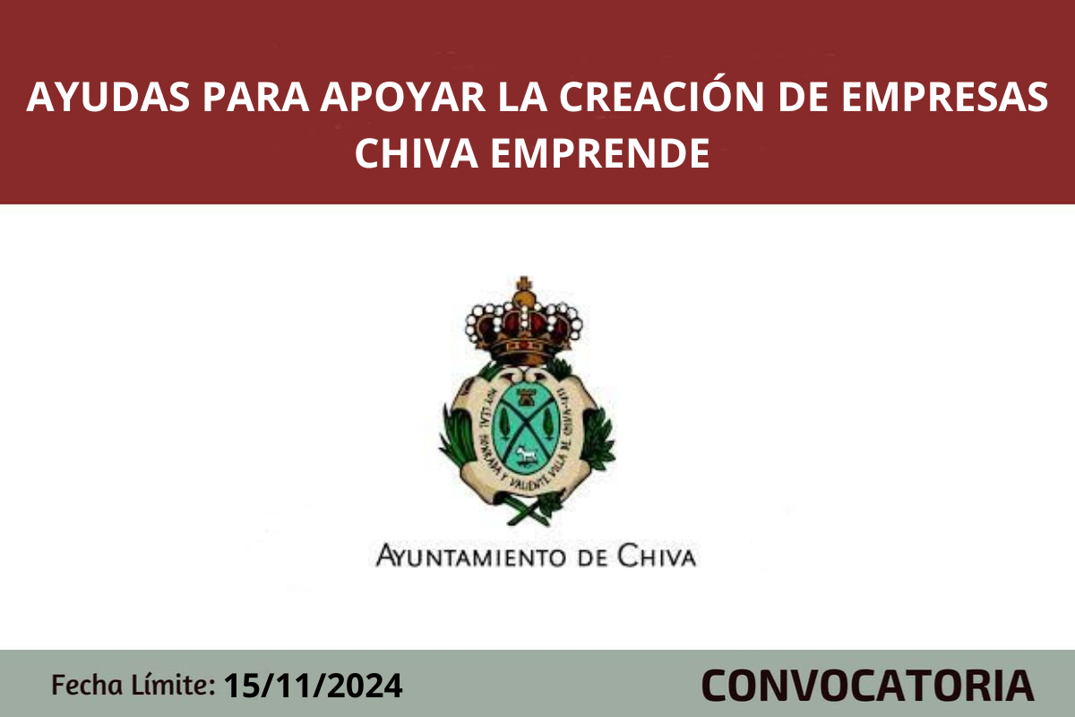 El Ayuntamiento de Chiva, a través del área de Innovación y Dinamización Económica, pone en marcha un programa de ayudas a personas emprendedoras que tiene como objeto el apoyo y fomento de la actividad empresarial, favoreciendo de esta manera la generación de empleo y riqueza en el territorio.