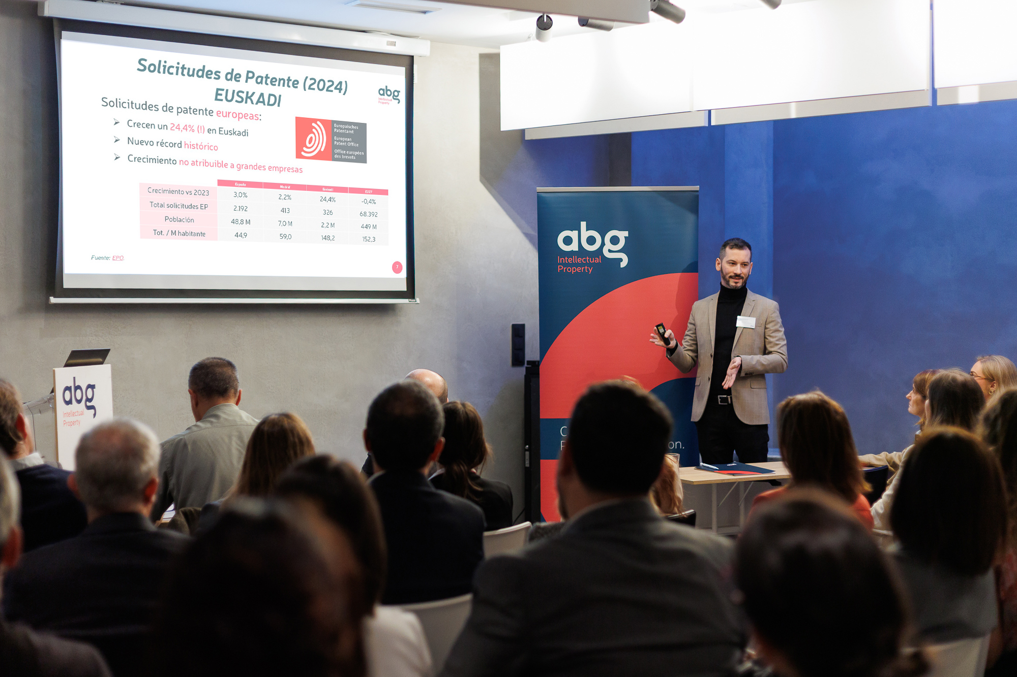 El éxito de la convocatoria ha sido tal que, por primera vez, la organización amplió el aforo previsto para atender todas las solicitudes de inscripción. Este aumento de participación se enmarca en un contexto especialmente dinámico: las solicitudes de patentes europeas con origen en Euskadi han batido su récord en 2024 (fueron 326 en total), según los últimos datos de la Oficina Europea de Patentes (EPO).